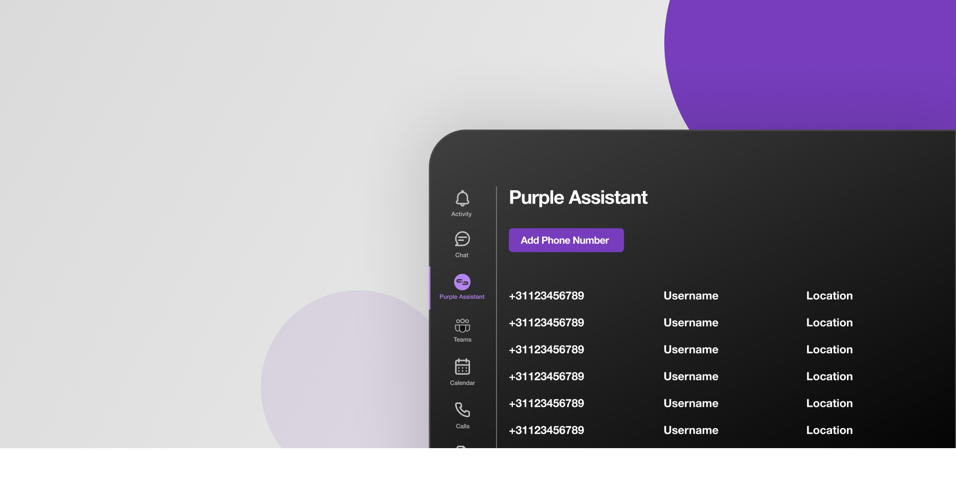 The Purple Assistant has all features to simplify number management within your organization. Just a couple of features you can enjoy: